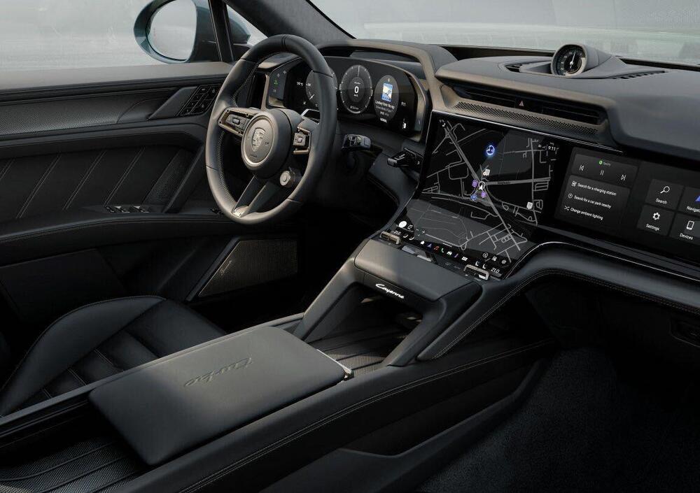 Parlando degli interni, la nuova Cayenne Electric rappresenta un passo verso il lusso, la digitalizzazione e la personalizzazione dell’esperienza di guida. La plancia, infatti, ospita tre schermi principali: il quadro strumenti da 14,9”, il display centrale curvo e un pannello opzionale per il passeggero. Questa moltitudine di schermi permette di visualizzare informazioni differenti contemporaneamente, con integrazione di sistemi AI e Google, gestione dell’infotainment e delle modalità di guida (Sport, Sport Plus e Launch Control).