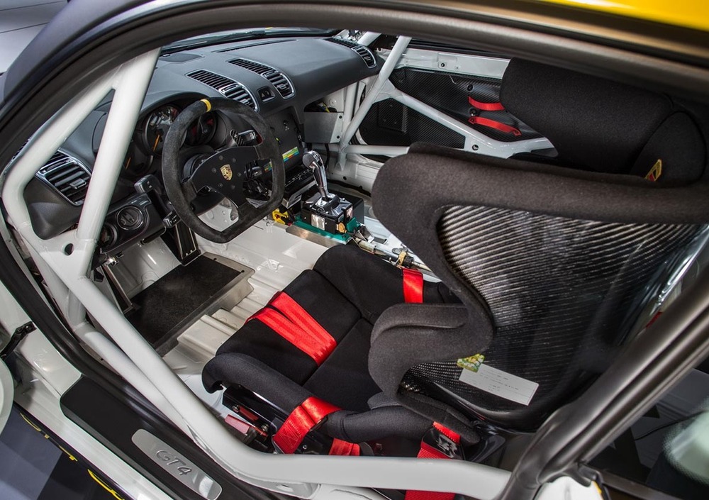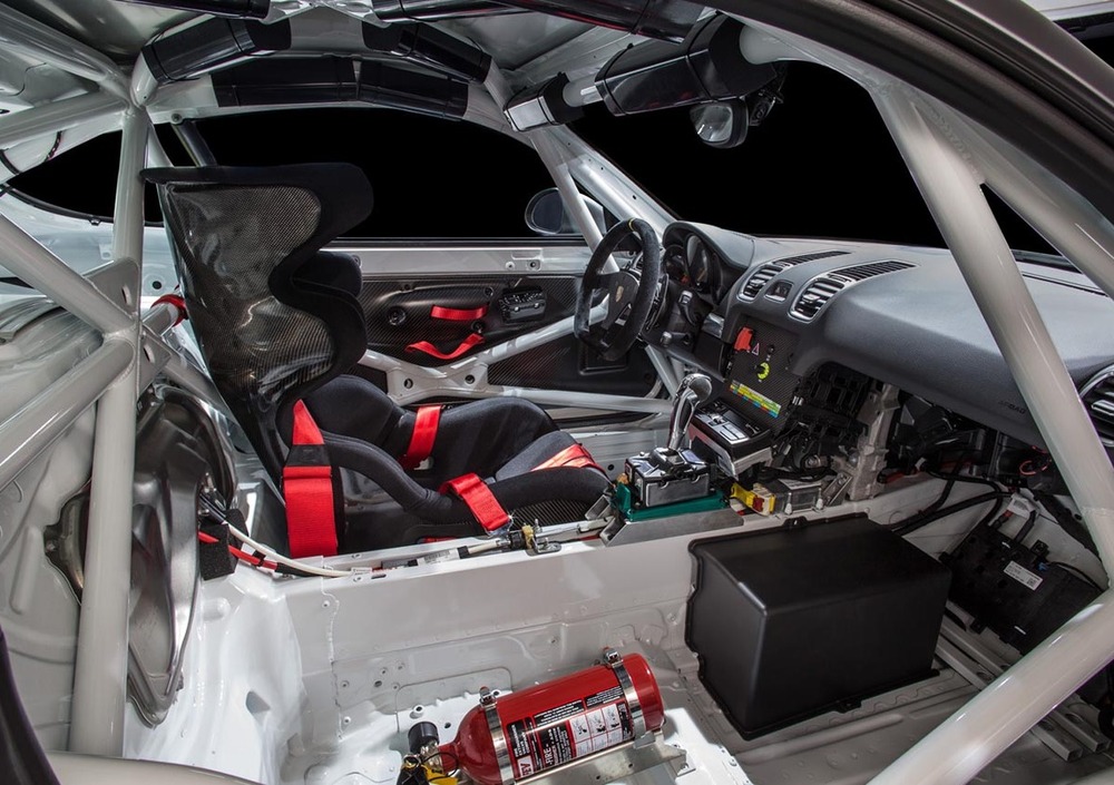 Nata per gareggiare tra i cordoli, la vettura è stata rivista e migliorata sotto vari punti di vista. Eredita direttamente dalla 911 GT3 Cup il sistema sospensivo in lega leggera, mentre l'impianto frenante è stato migliorato grazie all'adozione di dischi in acciaio di 380 mm l'uno. All'interno dell'abitacolo, sono stati giustamente eliminati tutti i fronzoli, per diminuire quanto più possibile il peso, che ora si assesta sui 1.300 kg. Il roll-bar saldato al telaio aumenta la rigidità comoplessiva, mentre il pilota può trovare comodamente spazio sul sedile in puro spirito racing con cinture a sei punti.