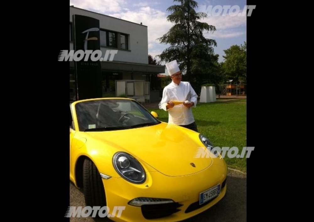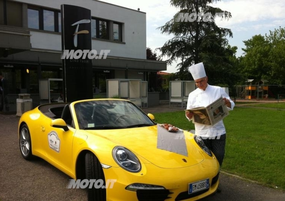 All'insegna delle eccellenze enogastronomiche del territorio bolognese la prima giornata del Porsche Grand Tour of Taste 2012. La manifestazione organizzata da Arena del Sole - Teatro Stabile di Bologna che impegna sette vetture messe a disposizione da Porsche Italia ha fatto la sua prima tappa in mattinata presso la Pasticceria Gino Fabbri di Cadriano, accolti dal titolare in persona, plurititolato maestro pasticcere, per una colazione a base dei migliori prodotti del suo laboratorio e la visita dello stesso.