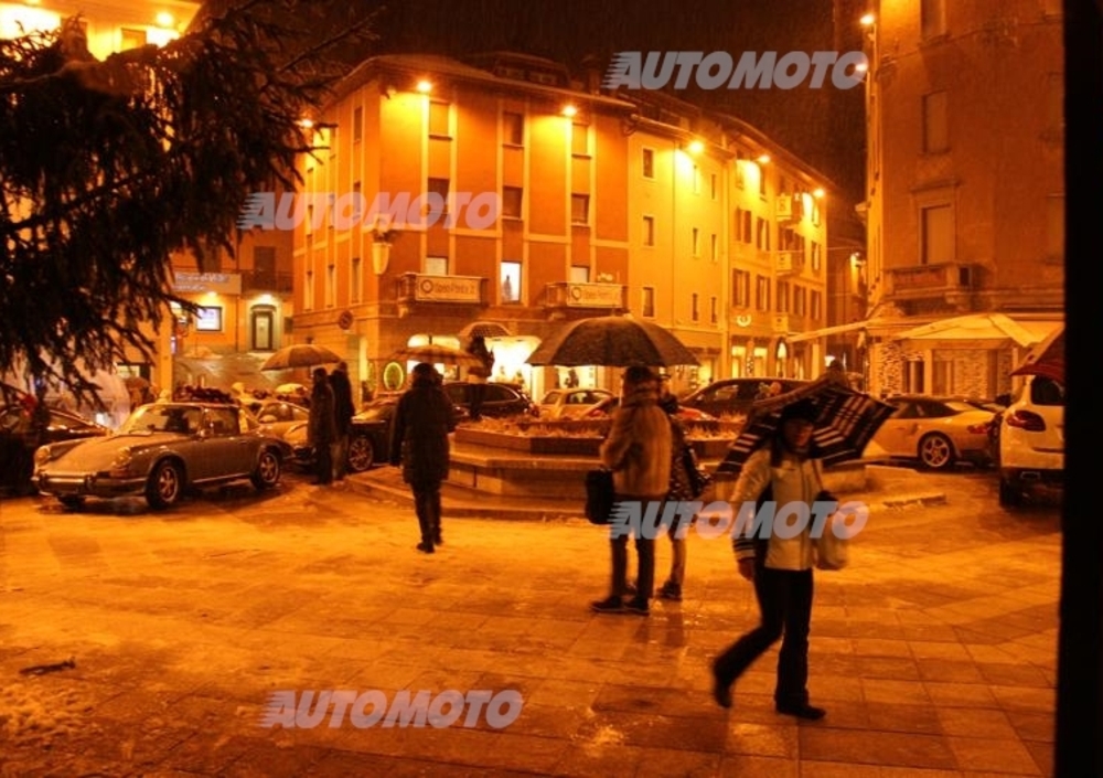 La neve poi, che ha continuato a cadere copiosa durante tutta la sfilata, posandosi dolcemente sulle carrozzerie delle Porsche, spolverandole di bianco, ha regalato il tocco finale alla serata, rendendo ancora più suggestivo e coinvolgente uno scenario davvero insolito per il centro di questo piccolo paesino all'ombra del Passo del Tonale.
