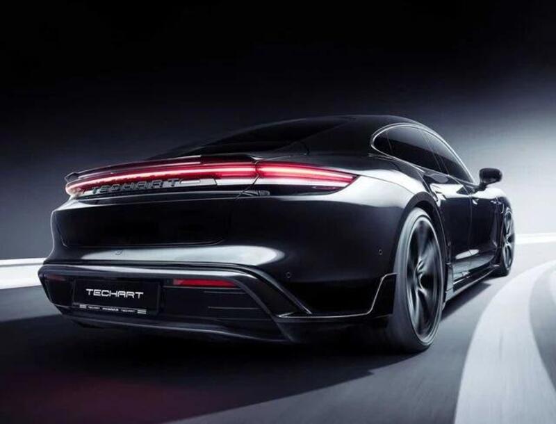 Posteriormente invece la Porsche Taycan di Techart ha un diffusore d'aria nuovo di zecca, ma il gioiello finale è lo spoiler posizionato sopra il lunotto posteriore. Ad ora non c'è ancora un prezzo ufficiale per il kit.