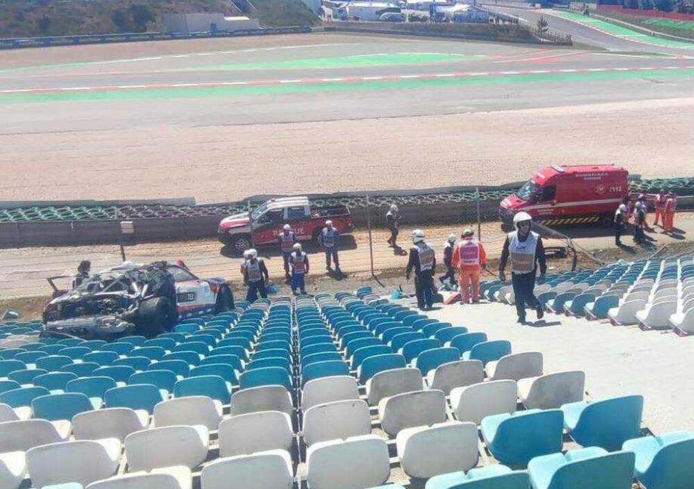 Durante la seconda sessione di prove libere del Porsche Sprint Challenge Iberica si è quasi sfiorata la strage. Sì, perché le tribune in quel momento erano vuote, di base lasciando campo aperto all'auto di finirci sopra, ma il risultato avrebbe potuto essere di gran lunga peggiore.
