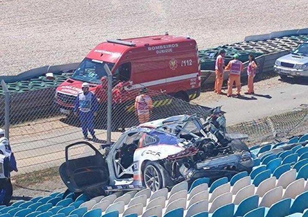 Alexandre Areia, uscito alla curva 1, ha impattato contro le barriere lanciando l'auto in aria e atterrando dove potete vedere in foto. La vettura, una Porsche 911 GT3 Cup, è finita sugli spalti di base senza ferire nessuno - nemmeno il pilota che, stando alle prime informazioni, sembra non aver riportato conseguenze.
