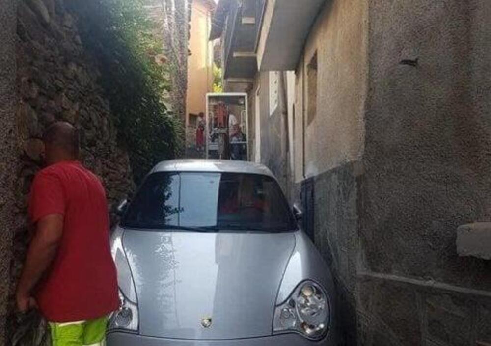 Cercava un ristorante e il navigatore lo ha tradito. Un uomo al volante della sua Porsche, infatti, è finito tra le strettissime viuzze di Meana, nella bassa Val di Susa e c'è letteralmente rimasto. Perchè la lussuosa auto si è incastrata tra due muri e l'uomo non è più stato ingrado di procedere, di tornare indietro e nemmeno di aprire gli sportelli per scendere. Secondo quanto riportato e documentato da ValSusaOggi e anche da la Repubblica per liberare il malcapitato e la sua 911 è stato necessario ricorrere all'intervento di alcuni volontari del locale servizio antincendio che, utilizzando un piccolo escavatore, sono riusciti a ...cavare l'auto dal buco. Ora, per il proprietario della Porsche, che alla fine ha risparmiato sul conto del ristorante non essendo riuscito ad arrivarci, si prospetta però, un conto piuttosto salato dal carrozziere. E, stando alle notizie diffuse, anche dal meccanico, visto che nel tentativo di liberare la macchina, la frizione è andata letteralmente bruciata.