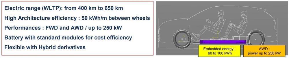 I nuovi modelli elettrici PSA debutteranno intorno al 2023 / 2024, il primo sarà un C-SUV. Auto che potranno arrivare a 650 Km di autonomia, grazie a una batteria modulare posizionata sul fondo, tra i due assi. Assi che potranno ovviamente avere trazione entrambi (4x4) sfruttando potenze fino a 250 kW.