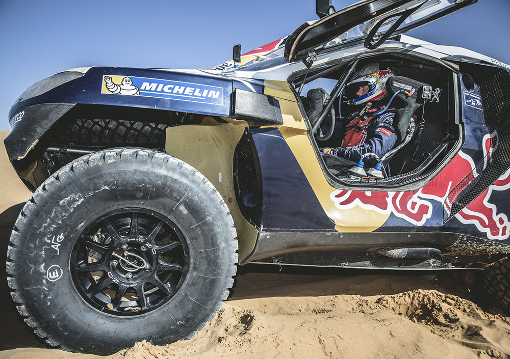 A quel punto, la raffica di colpi di scena. Al-Attiah fora una prima volta, e bucherà una seconda perdendo complessivamente almeno tre minuti nelle operazioni di cambio. E la battaglia che ha già dato una connotazione agonistica strepitosa al Rally offre subito dopo un altro colpo di scena. Sébastien Loeb, “fluttuante” tra il quinto e il terzo posto e in gara con la 2008 DKR+, la versione “ameliorée” che ha dominato il Silk Road Rally, si ferma con un vistoso calo di potenza. Ci sono testimoni, non tecnici, i soliti fotografi che, si dice, portano sfiga, ma pare che al V6 TurboDiesel da 350 cavalli sia saltato un manicotto, e in ogni caso il danno conseguente non consente al Pilota, e al navigatore Daniel Elena, di continuare. Si tratta ora di attendere l’arrivo di un concorrente disposto a fare il buon samaritano trainando la Macchina di loeb, che matura anche questo tipo di esperienza, sino all’arrivo.