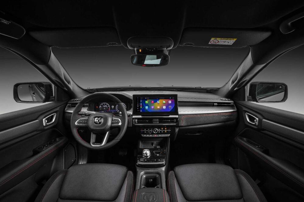 Qui RAM alza davvero lo standard del segmento e smonta qualsiasi dubbio sul posizionamento premium. I sedili soft-touch ispirati al comfort lounge utilizzano Suede sulla Rebel, mentre la R/T sfoggia pelle scamosciata traforata con cuciture rosse esclusive che gridano sportività da ogni angolo. La plancia rivestita in pelle, i pannelli porta anteriori, il bracciolo centrale e il volante multifunzione regolabile completano un ambiente che ha ben poco da invidiare ai SUV di lusso.