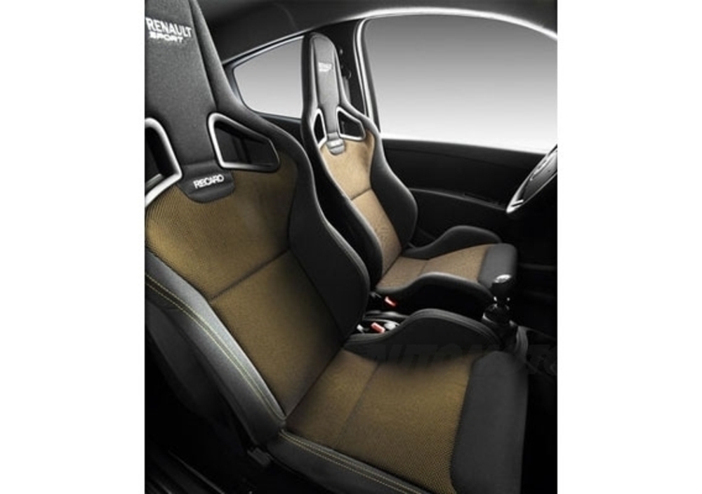 Dentro la sportività fa la voce grossa, come al solito: pedaliera in alluminio, volante in pelle traforata ed i sedili Renault Sport rendono aggressivo un ambiene impreziosito da nuovi dettagli elettronici mirati ad aiutare il conducente nella guida sportiva, come l'inedito contagiri dotato di spia per il cambio di rapporto.