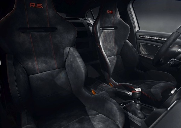 La RS Trophy-R pesa ben 130 kg in meno rispetto alla Megane RS Trophy standard (1.650 kg in ordine di marcia), per effetto dell’adozione di soluzioni piuttosto radicali. Mancano i sedili posteriori, i finestrini anteriori e posteriori hanno vetri più sottili e leggeri, con un risparmio di 1 kg, mentre le portiere posteriori sono dotate di vetri fissi che consentono la rimozione dei meccanismi e dei motori elettrici delle finestre. Allo stesso modo, il tergicristallo posteriore e i relativi motore e cablaggi sono stati eliminati, con un conseguente risparmio di 3 kg. Anche per il sistema di infotainment, comunque presente, si è osservato attentamente l’ago della bilancia: invece di quello con schermo da 8,7” c’è quello entry level da 7 pollici.