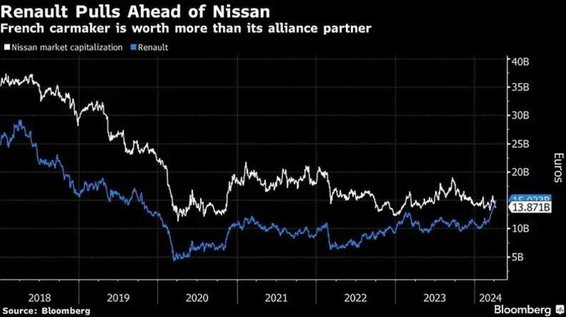 In un significativo cambio di rotta all'interno dell'industria automobilistica, Renault ha superato Nissan in termini di valore di mercato, segnando un punto di svolta storico nella loro lunga alleanza. Con un incremento del 37% nel valore delle sue azioni quest'anno, Renault ha raggiunto una valutazione di mercato di 15 miliardi di euro (circa 16 miliardi di dollari), posizionandosi un miliardo di dollari al di sopra della sua controparte giapponese.