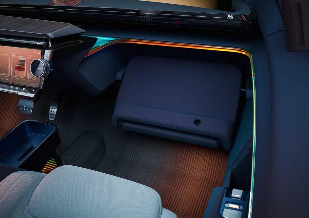 Il tetto completamente vetrato, i montanti sottili e il mezzo montante B creano un abitacolo particolarmente luminoso e aperto. Sul lato passeggero, gli airbag frontali e a tendina sono integrati nel sedile, liberando il cruscotto e lasciando spazio a un vano portaoggetti multifunzione. A bordo è presente anche un rilevatore tattile di alcol e un sistema di intelligenza artificiale integrata a supporto della guida e della sicurezza, con funzioni contestuali e raccomandazioni personalizzate.