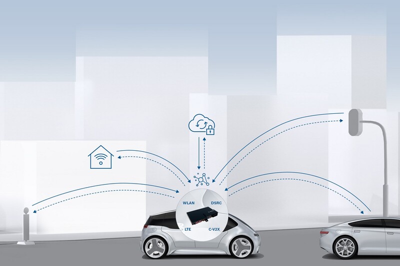 Bosch ha combinato centraline per la connettività con centraline per la telematica, in una sola tecnologia, per creare una centralina all-in-one V2X. Le auto, un po’ come i dispositivi mobili, possono utilizzare le reti Wi-Fi disponibili, oppure quelle cellulari. Le opzioni sono gestite da un software Veniam (azienda della Silicon Valley) con ricerca continua e selezione alternata, per non perdere mai la rete. Bosch sviluppa una centralina per la connettività compatibile con tutti gli standard, ma inizialmente ci si connetterà direttamente al cloud; in futuro invece, grazie alla tecnologia V2X, un numero sempre maggiore di veicoli sarà in grado di comunicare direttamente con altri veicoli, con la segnaletica, con i cantieri, gli attraversamenti pedonali, gli edifici, ecc.