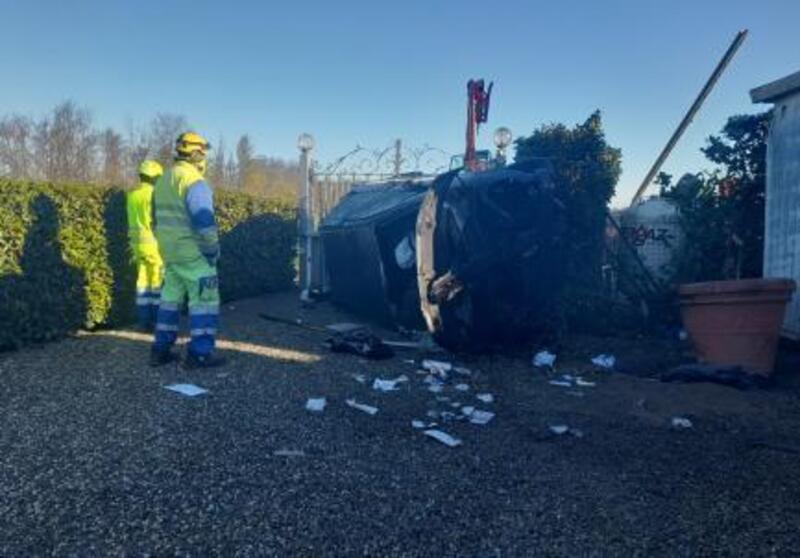 La temperatura sottozero, quindi la probabile formazione di ghiaccio e la presenza di un passaggio a livello hanno provocato la perdita di controllo del mezzo che si è ribaltato ed è finito nel cortile di una casa, sfiorando una bombola del Gpl.
