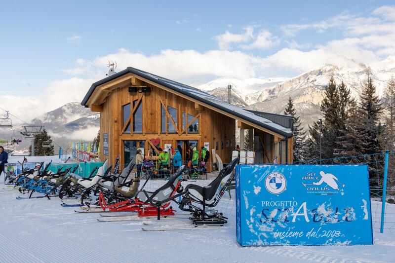 Per la stagione invernale 2022-2023, grazie allo sforzo di BMW Italia, sono state introdotte una serie di novità nei servizi offerti dalla scuola, a partire dal nuovo tapis roulant Baby Rock. Oggi, infatti, SciAbile può contare su di un tappeto di risalita della lunghezza di 100 metri, che vanta una larghezza adeguata per il trasporto di tutte le sedie di ausilio degli atleti. Questo permette di affrontare i primi approcci alla neve in maniera graduale e senza dover prendere la seggiovia, cosa che spesso, nelle prime fasi di apprendimento, può essere motivo di ansia, se non di veri e propri traumi. Avere una pista principianti più lunga ottimizza i costi di gestione e rende più graduale la progressione da pista baby alla successiva pista di Clotes (di livello difficile), fino alla seggiovia. Al nuovo tapis roulant si affianca inoltre il nuovo Chalet Sincero, una struttura ora a disposizione di maestri e allievi in grado di cambiare davvero la qualità del lavoro e dell’accoglienza a loro riservata. Il nuovo Chalet Sincero è suddiviso in tre piani e facilita l’accoglienza, la preparazione e l’attesa della lezione. È dotato di un parcheggio adiacente all’ascensore e al bagno disabili. Il primo piano è dedicato al deposito attrezzatura e alla vestizione dei ragazzi. Al secondo piano c’è un’area accoglienza con cucina attrezzata ad uso comune, divano, tv, dispensatore di bevande calde e soprattutto accesso diretto alla partenza del tappeto di risalita. Avere un luogo caldo, accogliente e adiacente alla pista è un valore aggiunto per tutti: i ragazzi disabili affrontano il primo approccio alla neve e allo sci in modo graduale, con ogni comfort a disposizione; il lavoro dei maestri è agevolato sia dal punto di vista logistico sia per le emergenze; famiglie e accompagnatori, infine, possono alleggerire i pensieri sentendosi come a casa e potendo guardare comodamente la partenza, la lezione e l’arrivo dei ragazzi. Lo Chalet Sincero è un dono di 2gether Onlus coadiuvata dalla fondazione Time2 appartenenti alla famiglia Lavazza.