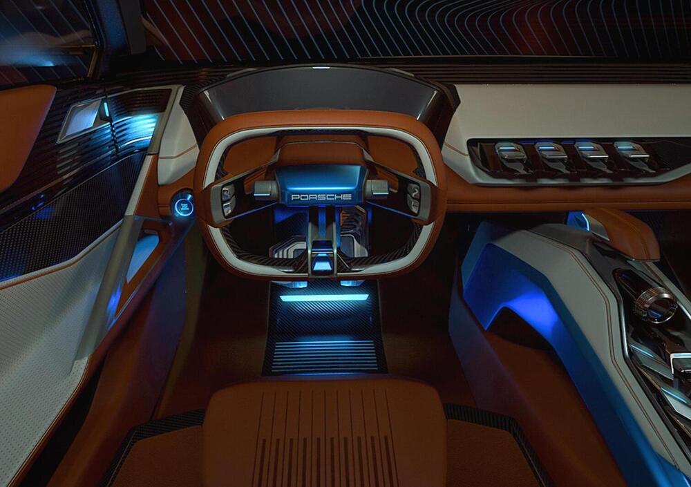 La rivoluzione più estrema è dentro le portiere, anche se l'abitacolo è da vero prototipo ed è difficile fare delle valutazioni concrete.Semplicità e dinamicità sono le parole d'ordine. Linee pulite e pochi fronzoli: al centro della plancia non c'è il classico orologio o il display per la gestione dell'infotainment: tutto è concentrato sul maxi schermo curvo sotto al naso del guidatore e i sedili son un mix di super sportività ed eleganza. Potrebbe essere un'elettrica e questa opzione potrebbe essere seriamente considerata da Porsche sulla futura 911. Insomma, per ora possiamo solo far lavorare la fantasia, perchè per ancora molti anni la protagonista della gamma sarà la 992.