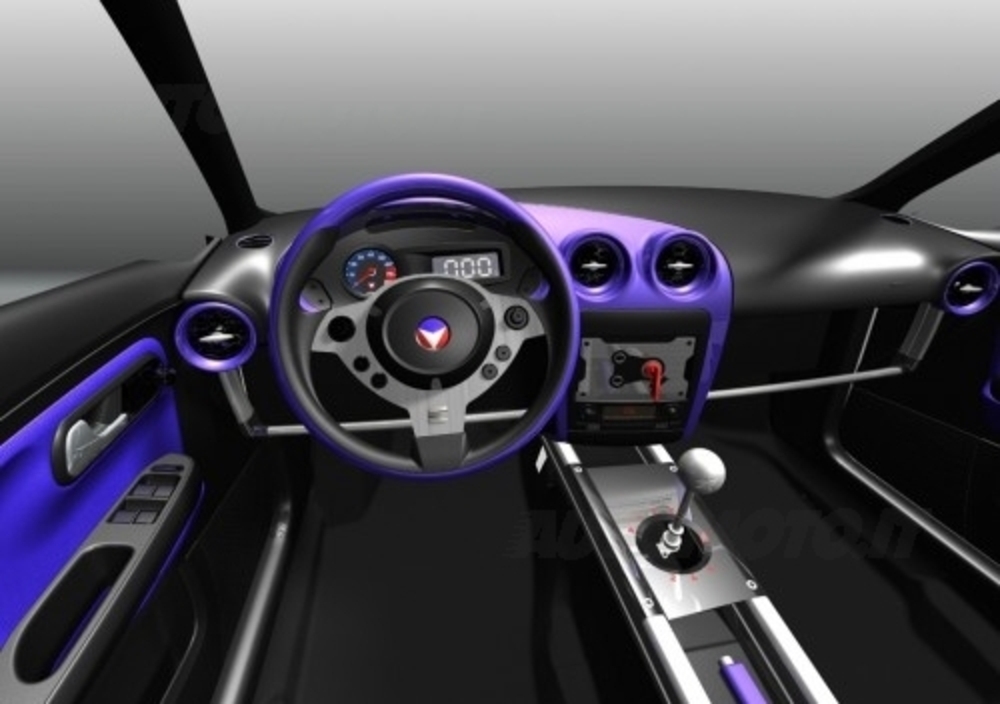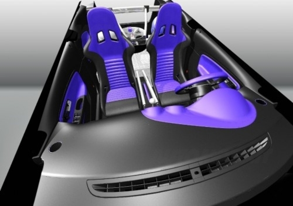 Il centro di questa struttura è occupato da una ruota di scorta a vista, mentre sulla barra trasversale situata dietro i sedili – anche questi di forma decisamente sportiva – sono ospitati dei supporti per i caschi e i fissaggi per le cinture di sicurezza. Le due barre che terminano sulla consolle centrale anteriori servono da supporto per la leva del cambio, posta in una posizione rialzata, proprio come nelle macchine da corsa.