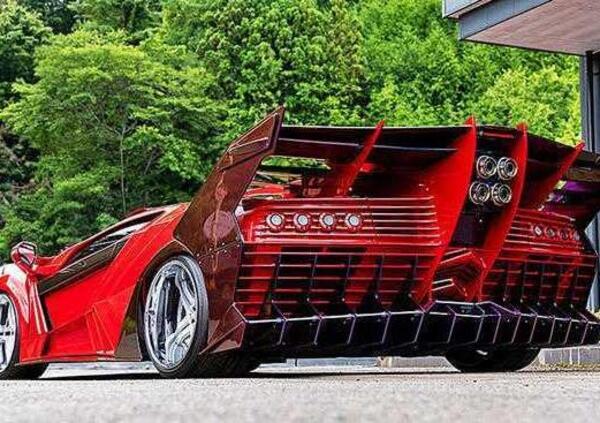 La base di partenza di questo stravagante progetto è nientemeno che una Lamborghini Diablo, una delle icone degli anni '90, dotata di un V12 capace di prestazioni estreme. Ma la trasformazione operata da Value Progress ha radicalmente stravolto la sua essenza, abbandonando la sinuosa silhouette disegnata da Marcello Gandini per un'estetica che mescola elementi della scena Bosozoku, esagerazioni da manga e pieghe che sembrano uscite da un esperimento di origami andato fuori controllo.