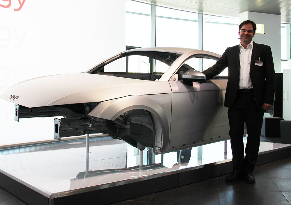 «Secondo noi non serve fossilizzarsi sull'utilizzo di un unico materiale. Noi preferiamo utilizzare il materiale giusto, al posto giusto, nel quantitativo giusto, è questo il segreto del telaio Audi Space Frame. In sostanza la zona bassa del telaio è realizzata in acciaio, mentre la parte alta in alluminio. Abbiamo utilizzato acciai ad alta resistenza formati a caldo, che possono essere molto sottili e quindi anche molto leggeri, senza compromettere la sicurezza. Tra le numerose parti realizzate in alluminio spicca il padiglione del tetto, realizzato con una nuova tecnica che sfrutta un olio in pressione a 3.000 bar. In questo modo siamo riusciti a ridurre lo spessore a soli 3 mm e quindi il peso, senza per questo correre alcun rischio in caso di ribaltamento».