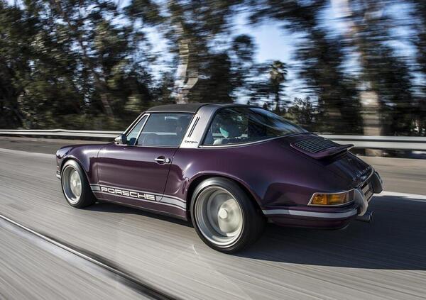 Questa 911 Targa battezzata “Atherton” da Singer è una Targa con motore 4.0 litri a 6 marce, dipinta in una bella tinta “Pen Purple” con bande grigie e scritta Singer in “Racing White”.