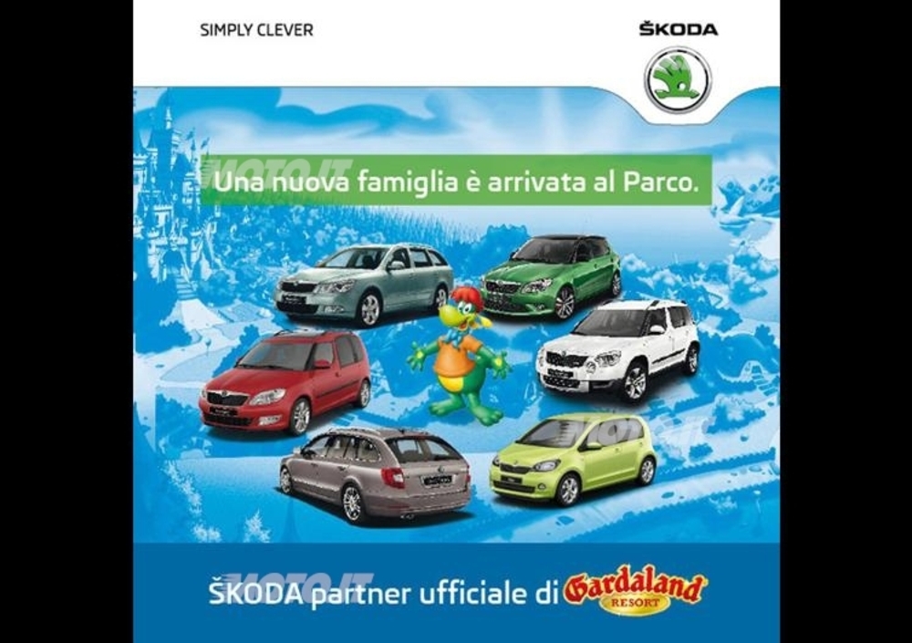Quello tra la Skoda e Gardaland è un binomio ormai consolidato: il marchio della Freccia Alata sarà anche nel 2012 Partner Ufficiale del Parco Divertimenti di Gardaland con una serie di vetture poste al fianco di svariate attrazioni all'interno del Parco stesso.