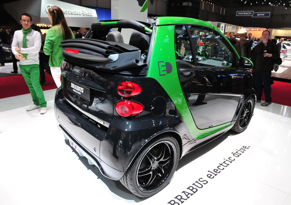 L'inedita smart Brabus electric drive invece presenta una tonalità bicromatica, con corpo vettura in nero profondo e cover degli specchietti retrovisori e cellula tridion (quest'ultima arricchita dal logo “E” all'interno) in verde elettrico, mentre la carrozzeria guadagna uno spoiler anteriore dedicato e i cerchi in lega a sei razze sdoppiate da 16 e 17 pollici di diametro. Sotto al cofano pulsa un'unità elettrica potenziata da 55 a 60 kW di potenza, con un valore di coppia che passa da 130 a 135 Nm.