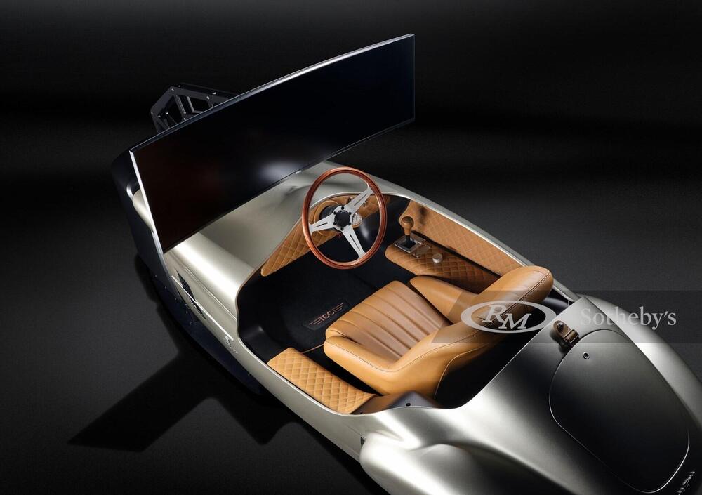 La cura nella realizzazione di quest’oggetto è maniacale per quanto riguarda i dettagli, come ad esempio il volante in legno Nardi, la leva del cambio manuale, la configurazione a tre pedali e cronometro Hanhart vintage integrato nel cruscotto, insieme a un pulsante di avviamento. Un unico sedile è circondato dalla stessa pelle Connolly color marrone tabacco che riveste la cabina del simulatore, che a sua volta è avvolta in uno stretto guscio esterno, color Argento Vivo, che ricorda molti design di auto classiche senza tempo.Un televisore widescreen curvo è posizionato sopra il sedile del conducente, offrendo un'esperienza di guida più coinvolgente.
