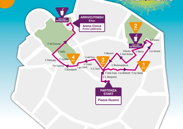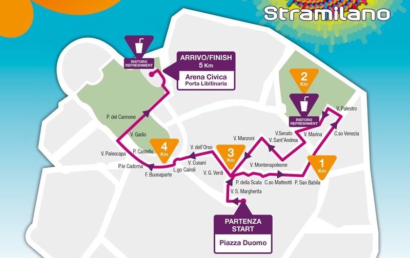 Stramilanina 5 km, partenza ore 10:00 da Piazza Duomo, arrivo entro le 13:30 all’Arena Civica. La corsa dedicata ai più piccoli e alle loro famiglie. Nessuna regola, nessun ritmo imposto. Ecco la mappa del percorso.