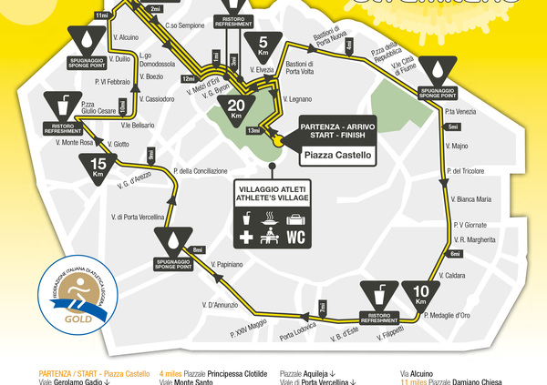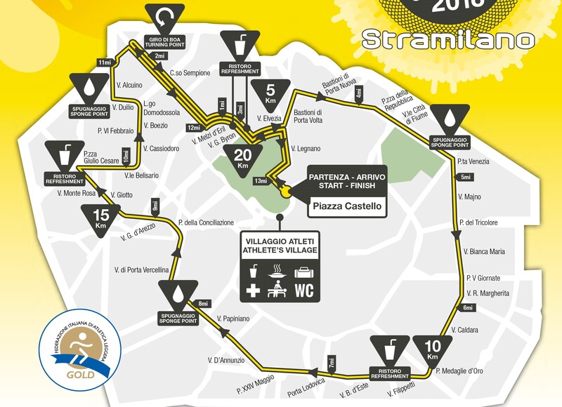 Stramilano Half Marathon 21,097 Km, partenza ore 10,30 da Piazza Castello, arrivo in Piazza Castello. Oltre 7.000 runner: professionisti e amatori, campioni mondiali ed italiani, tesserati FIDAL e IAAF. Le pettorine sono dotate di microchip per il cronometro, che si attiva nel momento in cui si transita sul traguardo: quindi non c’è da preoccuparsi se non si parte in pole position. Al termine della corsa ci sarà un ristoro offerto dall’Organizzazione, gli spogliatoi per cambiarsi e la possibilità di godersi rilassanti massaggi defaticanti. Qui sotto la mappa del percorso.