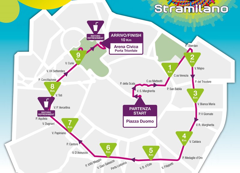 Stramilanina 10 km, partenza ore 9:00 da Piazza Duomo, arrivo entro le 13:30 all’Arena Civica. Pensata per tutti, dai runner a chi vuole trascorrere una giornata all’aria aperta. Ognuno può correre al ritmo che preferisce e, per chi è più competitivo e vuole partire dalle prime file, l’organizzazione consiglia di arrivare già verso le 7,30. È possibile iscriversi fino a pochi minuti prima dell’inizio della corsa presso il Centro Stramilano, presente al centro della Piazza fino alle ore 13. Qui sotto la mappa del percorso.