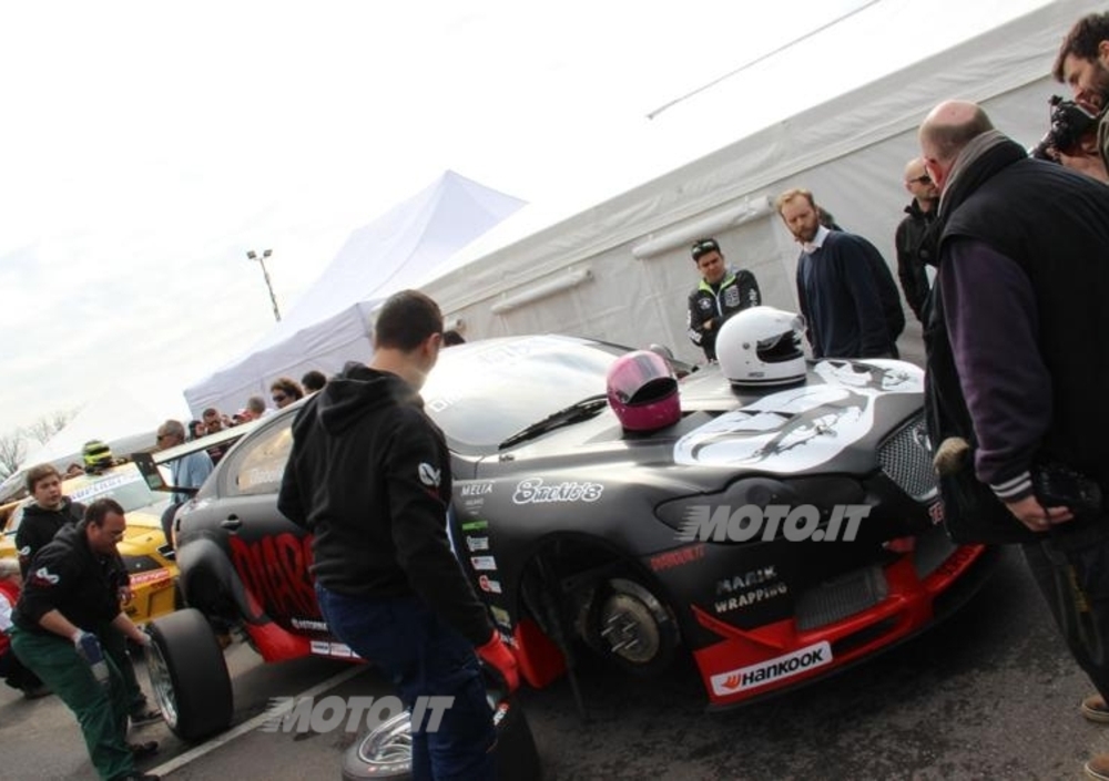 Se l’obiettivo del team e degli organizzatori della Superstars era quello di attirare l’attenzione si può certo dire che sia stato pienamente raggiunto. Tra il pubblico si sente continuamente parlare dell’auto di Diabolik, mentre tutti si chiedono chi sia il misterioso pilota nascosto dal travestimento nero.
