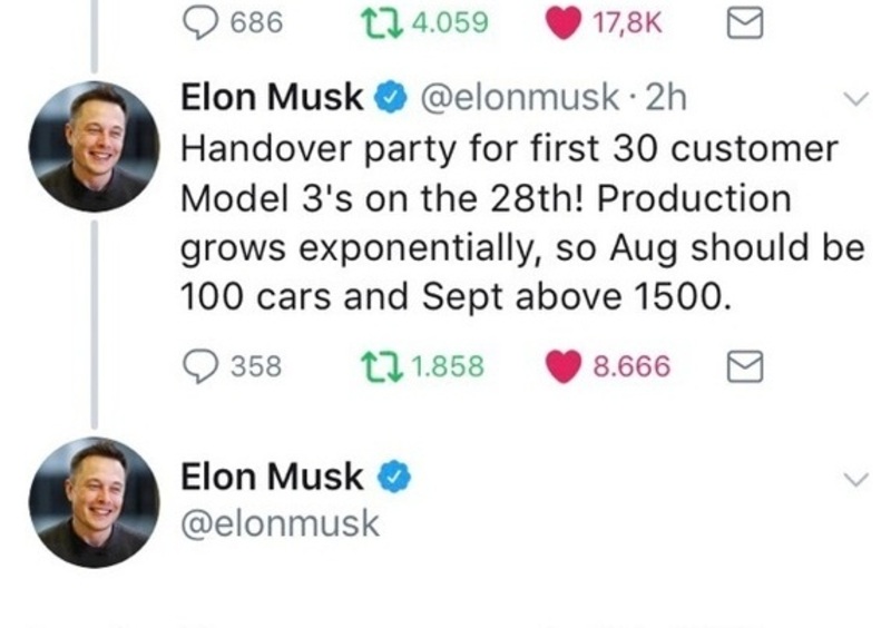 Il 28 luglio, invece, si svolgerà presso il Tesla Design Studio di Hawthorne, in California, un nuovo evento, dove non solo verrà presentata la versione definitiva di Model3 e aperto il configuratore online, ma i primi 30 clienti riceveranno la loro tanto attesa Model3, direttamente dalle mani di Elon Musk.