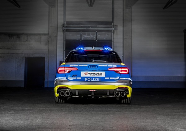 Se i 450 CV della RS4 Avant non fossero abbastanza, ABT è riuscita a tirare fuori altri 80 CV, per un totale di 530 CV e 690 Nm di coppia. Oltre sul motore e sull'elettronica, i tecnici hanno montato un radiatore dell'acqua aggiuntivo, prese d'aria miggiorate e quattro scarichi da 102 mm. All'interno dell'abitacolo sono presenti tutti gli accessori utili alla polizia per comunicare con la centrale operativa e accendere sirene e lampeggianti. All'esterno non poteva mancare la vistosa grafica grigio-blu-giallo fluo e gomme sportive firmate Hankook per avere il massimo del grip e della trazione. Peccato non poterva vedere mai in azione, sicuramente avrebbe potuto dare una mano nel caso di inguimenti ad alte velocità...
