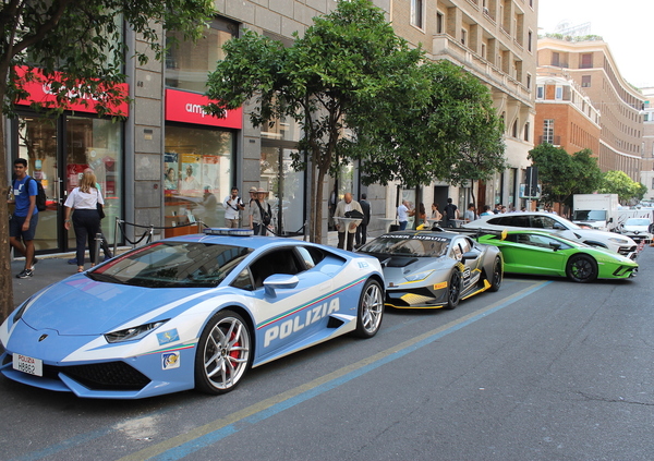 Anche se i sampietrini di via Bissolati non sono certo il fondo ideale per le iperprestazioni delle vetture bolognesi, c’è da dire che il colpo d’occhio offerto dalle Lamborghini (ad iniziare da quella sempre scenografica con i colori della Polizia Stradale), parcheggiate nelle vicinanze dello showroom era davvero esaltante.