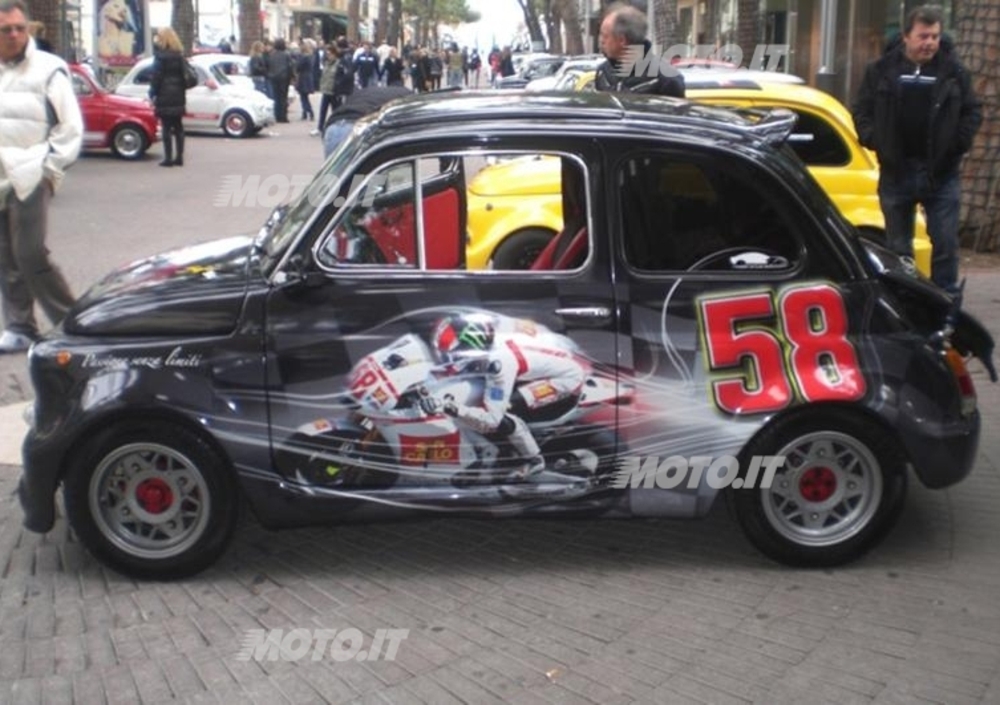 Gabriele Ravagni, socio della filiale di Modena del Club che conta oltre 21.000 appassionati, ha infatti realizzato questa bella aerografia sulla propria 500 Abarth 595 d'epoca dedicata al pilota del team Gresini tragicamente scomparso lo scorso anno in Malesia.