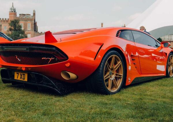 Come detto la vettura si basa sulla Huracan LP 610-4, ma dell’auto originale è rimasto davvero poco. Gli unici pezzi in comune con la sportiva di Sant’Agata Bolognese sono i gruppi ottici anteriori e posteriori, gli specchietti e il tetto, tutto il resto è stato rifatto da zero in pregiata fibra di carbonio. Il corpo è realizzato in fibra di carbonio, entrando da Envisage Group, ed è stato progettato ogni pannello per allinearsi con il telaio della Huracan senza compromettere l'integrità della monoscocca.