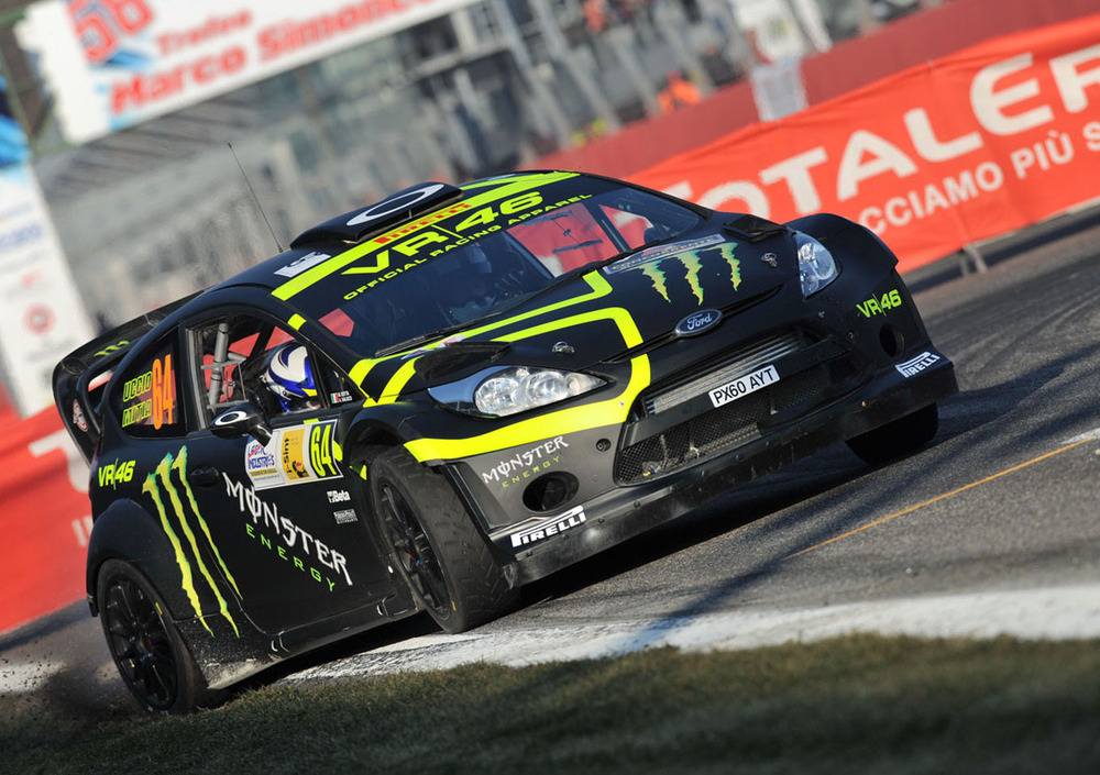 Valentino sarà alla guida di una Ford Fiesta WRC, come quella usata l'anno scorso quando Rossi, nel Master's intitolato a Marco Simoncelli andato in scena nella giornata di domenica, si dovette arrendere al solo Sébastien Loeb.