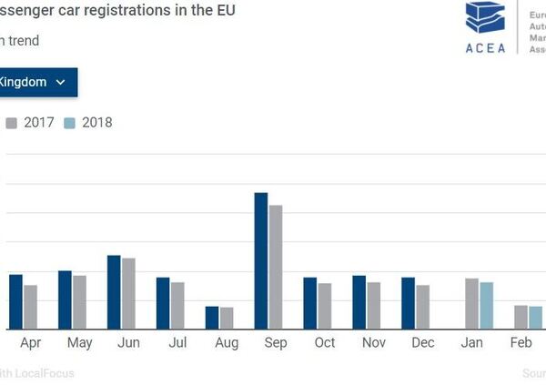 Certo, il riferimento su 2017 non è di quelli più facili, contando che proprio un anno fa, a marzo, si sorrideva nel settore automotive per i buoni risultati conseguiti. Oggi è soprattutto il Regno Unito a cedere il passo, -15.7%, ma anche noi non siamo meglio di Spagna, Francia e Germania, dove i cali sono tra 2% e 3% circa: il Bel Paese segna a marzo 2018 un calo di immatricolazioni nuove auto per il 5.8%. Contando il primo trimestre, nei maggiori stati dell’Unione la disparità è ben maggiore: Spagna a +10.5%, Germania +4.0% e Francia +2.9%, in espansione, mentre l’Italia segna -1.5% e i sudditi di sua maestà la regina, addirittura comprano meno auto per il 12.4%. Sul totale trimestrale aggregato, a quota 4.171.628 nuove auto immatricolate, incidono i trend positivi soprattutto dei nuovi stati membri. A livello di singoli marchi, dati alla mano, sono Nissan, Ford e Fiat a segnare le maggiori perdite globali, contando infatti rispettivamente -16%, -15% e -13% di nuove immatricolazioni su insieme EU più EFTA (European Free Trade Association, ovvero Islanda, Liechtenstein, Norvegia e Svizzera).