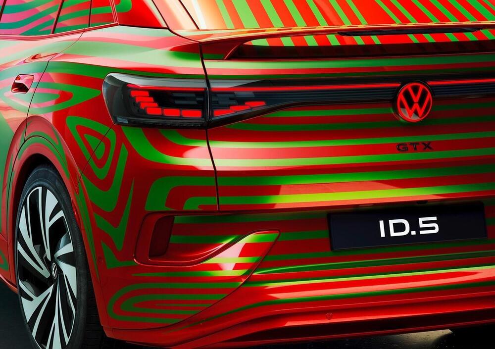 Mentre il debutto ancora deve essere ufficializzato, intanto Volkswagen ha pubblicato in rete alcune foto della sua ID.5 coperta però da un camuffamento alquanto eccentrico, di colore rosso e verde. Da ciò che possiamo vedere esteticamente, la vettura presenta una forma decisamente più sportiva dell'altro modello: l'auto elettrica avrà uno spoiler posizionato nella parte posteriore (e non sopra al lunotto come nella ID.4), oltre che un tetto decisamente più curvilineo.