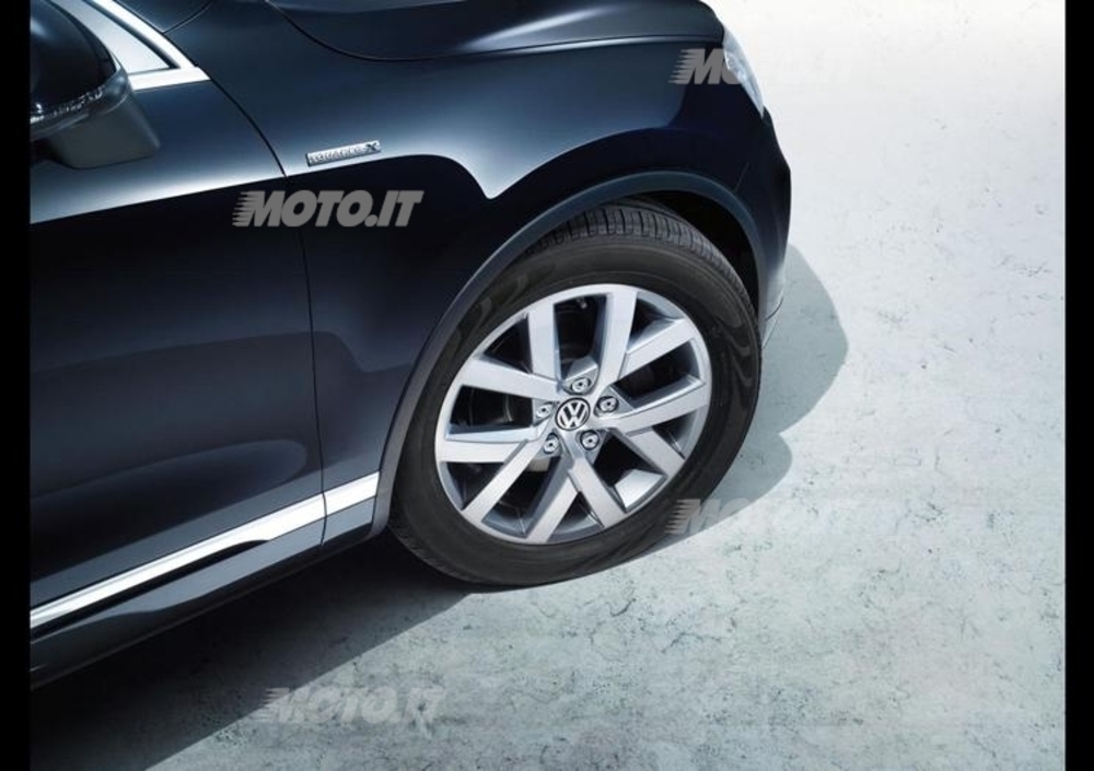 Esteriormente la Volkswagen Touareg Edition X è immediatamente riconoscibile dalla versione di serie per via delle barre portatutto anodizzate poste ai lati del tetto panoramico, per i gruppi ottici con tecnologia LED (sia davanti che dietro) dotati di proiettori bi-xeno, oltre che per i cerchi in lega da 19 pollici a 5 razze ad Y e per il pacchetto Chrime & Style esterno.