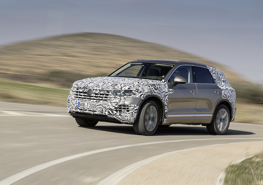 Dalle immagini nella gallery, le linee sono più snelle con un look meno ingombrante e più sportivo. Inoltre, la griglia frontale è leggermente più grossa e di conseguenza i fari a LED sembrano più sottili. La parte posteriore si vede pochissimo: dei fari non è stato svelato nulla, ma sul bagagliaio compare la grossa scritta “Touareg” al centro proprio sotto lo stemma Volkswagen. Per quanto riguarda i dettagli tecnici, il SUV tedesco nasce sulla la piattaforma Mlb evo, la stessa dell’Audi Q7 e del Porsche Cayenne. Inoltre, arriverà anche una nuova interfaccia utente e infotainment, con nuove e interessanti funzionalità per la Casa di Wolfsburg.