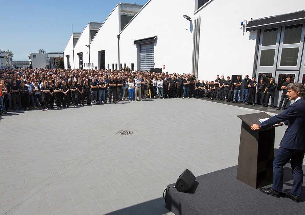 Dopo l'annuncio ufficiale, insieme agli esponenti del governo Renzi, Stephan Winkelmann, Presidente e AD di Lamborghini, ha voluto incontrare però di persona i 1.200 dipendenti dell’Azienda per renderli partecipi della nuova era.