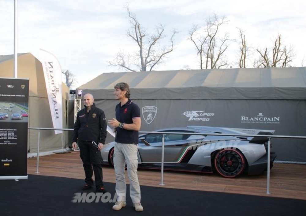 «La prima cosa che desidero dire è che sono orgoglioso di avere alle mie spalle la Veneno, la nostra vettura più potente mai prodotta che rappresenta un perfetto bilanciamento tra aerodinamica e design e voglio ringraziare le due persone più direttamente responsabili della realizzazione di questa macchina, ovvero Maurizio Reggiani, Research & Development Director, e Filippo Benini, Lamborghini Design».