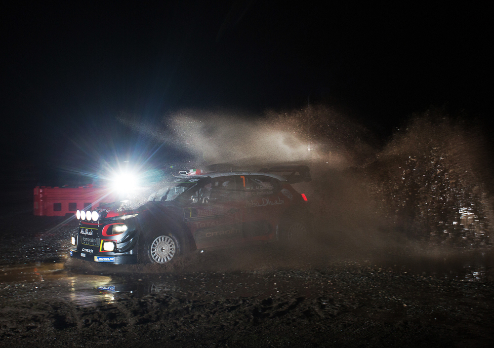 La partenza è buona. Meeke e Nagle, come era lecito attendersi, sono già nella mischia. Nonostante uno stop per uno “stallo” nella Speciale inaugurale all’Ippodromo, la C3 WRC numero 9 ottiene una serie di buoni piazzamenti, in particolare il secondo posto nell’insidiosa Myherin, che portano l’Equipaggio al terzo posto della classifica provvisoria del primo giro. Il risultato è ancora più interessante se si tiene conto dell’ordine di partenza di Meeke, non certo favorevole. La seconda tornata di esecuzioni sulle Myherin, Sweet Lamb e Hafren è più delicata, e la potenza della C3 WRC diventa più difficile da controllare. Meeke scivola sulle superfici incerte dell’ultima Hafren e conclude la giornata al sesto posto. Il Pilota è contento, la macchina risponde e non si poteva fare di più partendo nel fango degli avversari.