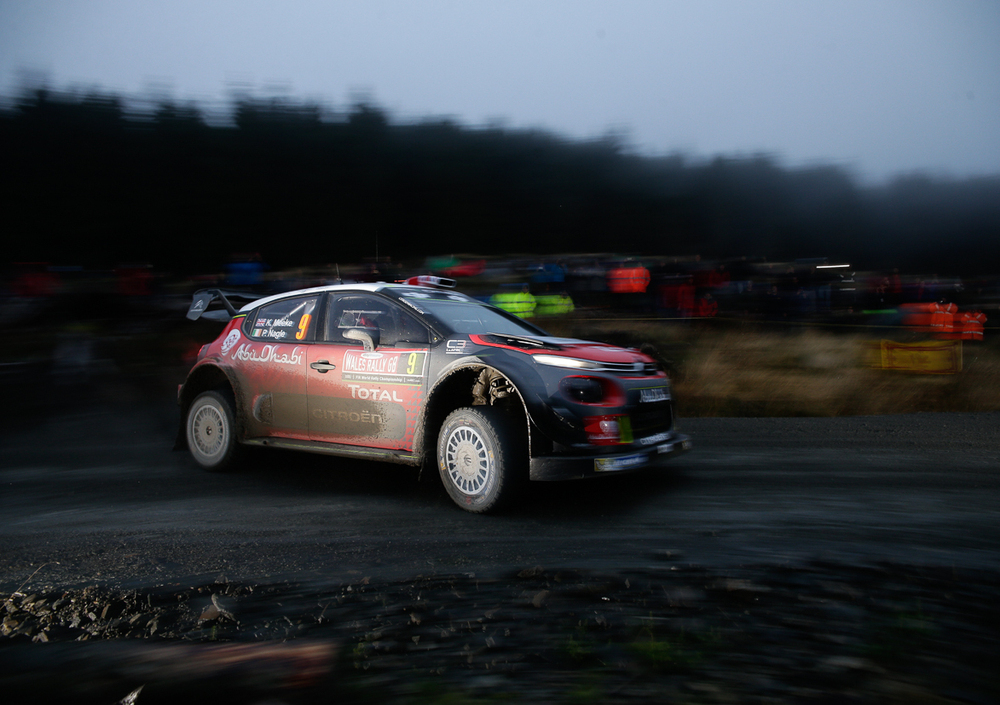 Il Rally è spaccato in due. Da una parte la ristretta cerchia degli Equipaggi in gioco per il Mondiale, dall’altra chi sta già lavorando sulla macchina del 2018, e che usa i terreni del Rally più delicato e imprevedibile della stagione per collaudare la propria evoluzione. Meeke è già al lavoro sulla C3 WRC dell’era Besse. Il Tecnico francese, responsabile dello sviluppo, ci aveva anticipato che questo sarebbe stato un Rally difficile per la Macchine, e Meeke lo ha dimostrato portandola al limite e “costringendola” due volte all’errore. In entrambi casi è stato come premere il bottone del reset, e ripartire. La prima “scivolata” quando il nordirlandese era terzo a metà della prima tappa, la seconda in piena rimonta dopo essere partito immediatamente all’attacco della seconda tappa, la più lunga del Rally e probabilmente della stagione. Ormai costantemente nel lotto degli inseguitori dell’”evaso” Evans, autentica rivelazione del Rally del Galles, Meeke arriva lungo in frenata alla chicane della Dyfi, la speciale più lunga del giorno con i suoi 25 chilometri, “perde” la Macchina e tutto il vantaggio ricostruito nelle precedenti tre Speciali. Ora di calare il ritmo e di continuare il “test”. Meeke danneggia parte dell’ala posteriore nella successiva Gartheiniog e quindi assesta il passo su un ritmo di sicurezza che vale alla C3 WRC ancora tre buoni piazzamenti e un settimo posto assoluto al termine del secondo giorno. “Una giornata da pazzi, in condizioni davvero difficili, fango, pioggia, la nebbia al buio. Ma la Macchina risponde molto bene ed è molto equilibrata. Mi fa divertire. Anche senza il supporto aerodinamico dell’ala che ho rotto per metà, e anche nella nebbia: magnifico!”.
