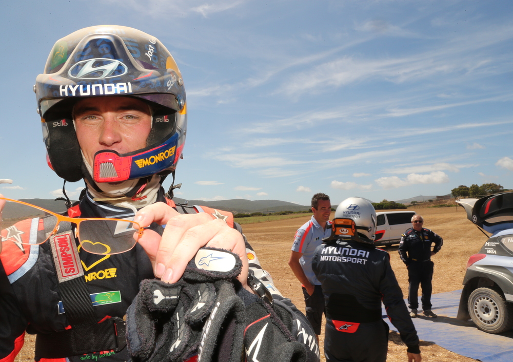 Cala Flumini, Alghero – È una giornata calda e ventosa, come spesso accade in questo periodo dell’anno in Sardegna. Arriviamo sulla sede della PS18 del Rally di buon mattino, e davanti ai nostri occhi si para lei: la Hyundai i20 WRC, l’”arma” del costruttore coreano per dare battaglia a VW e non solo per la caccia al titolo mondiale. Dopo pochi istanti, si manifesta lui, Thierry Neuville, fresco vincitore della prova iridata del giorno precedente. Sotto al casco, lo sguardo di un ragazzo di 28 anni, dal quale traspare la gioia per l’impresa e la rinnovata fiducia per il prosieguo della stagione.