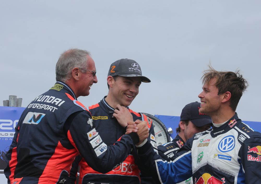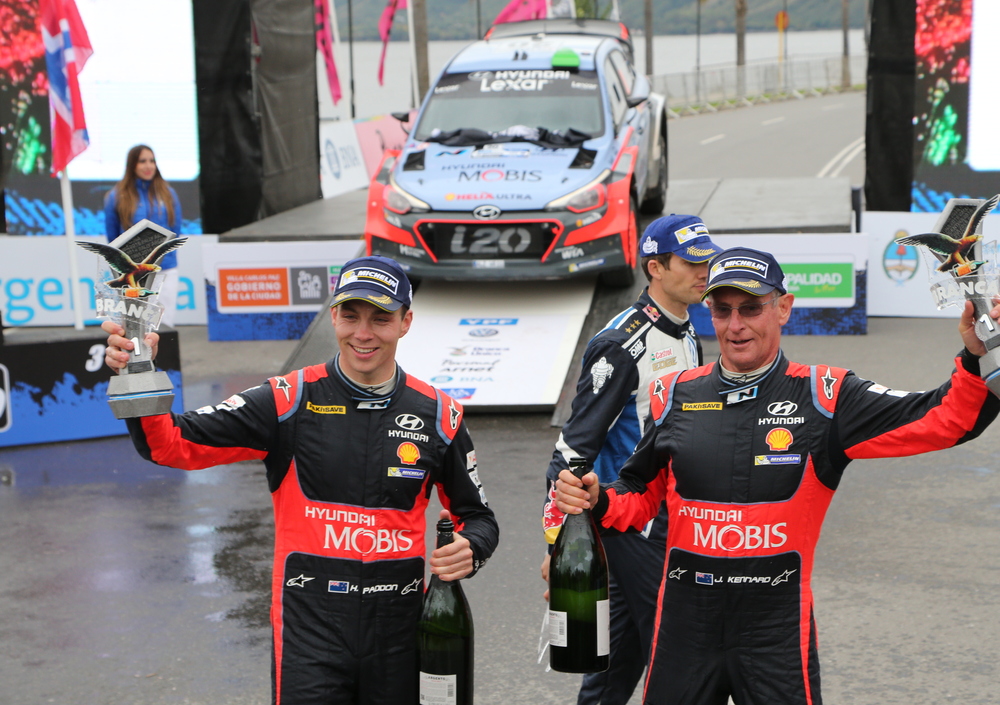 Entra in pista Ogier, che si avvicina impadronendosi degli intermedi registrati prima del suo passaggio, ma nel finale è più sporco e conclude al secondo posto alle spalle di Sordo, cinque decimi più “lento” dello spagnolo. “Non potevo fare di più, niente di più che guidare e uscire da questa Speciale così dura!” Scende di macchina e si unisce ai compagni vicino al podio per seguire l’arrivo di Paddon. Ogier ha fatto tutto quello che poteva e doveva fare. Ora c’è solo da aspettare. E quando il fuoco si sposta sulla i20 di Paddon è per scoprire che il neozelandese, che una PS prima non aveva più niente da dire, ha disintegrato gli intermedi e sta volando via più veloce del Condor, più rapido di Ogier. Paddon si esprime ora in un altro modo, in un’altra lingua, più spettacolare ed eloquente. All’arrivo è ovvio tripudio, sbalorditiva constatazione. Non solo non ha perso nulla di quei due secondi, ma ne ha addirittura aggiunti 11 e 11 e mezzo a Sordo e Ogier. Paddon e la i20 vincono il Rally YPF Argentina 2016. Giganti! Hayden Paddon, il suo primo successo Mondiale, il primo neozelandese vincitore di una Prova di Campionato del Mondo WRC. Straordonario, Pilota stratosferico! Un amico mi sussurra: “Te lo avevo detto, è lui il nuovo Crack!” Il navigatore di Paddon, John Kennard, sembra averci sentito, e comunque aggiunge: “Hayden diventerà Campione del Mondo.”