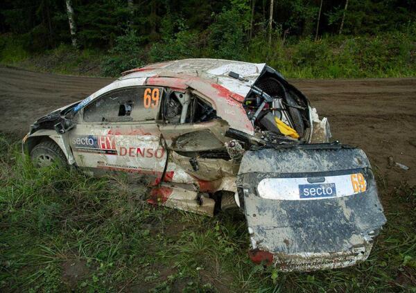 In Finlandia, come in Estonia, Rovanpera andava fortissimo divertendosi e controllando egregiamente condizioni difficili, l’adrenalina della velocità a scaldare il sangue di giovane Campione freddissimo. Rovanpera partiva per primo, ma non importa, strade scivolose, pioggia e “sporco”, non importa. Dopo l’exploit di Katsuta vittorioso sulla Laukaa, la prima del giorno a dimostrazione, non ce ne voglia il giapponesino, che la Macchina è “probabilmente” meglio delle avversarie, Rovanpera metteva giù e andava via. Primo in tutte le restanti Speciali del primo giro, un discreto margine già in cascina, e avanti con il secondo giro di Speciali del Venerdì. Avanti la sesta, Laukaa 2, e avanti la settima, Lankamaa 2, altre due vittorie e solo Evans ancora in scia. Poi l’ottava, la seconda Myhinpää, 15 chilometri e mezzo. 11 chilometri dento la Speciale, Rovanpera perde il retrotreno e va in tonneau. Dopo varie giravolte la macchina si ferma sul tetto, il posteriore distrutto. Pilota e Navigatore stanno bene, escono dalla Yaris distrutta e, contestualmente, dal Rally che li voleva finalmente in grado di portare a casa il primo successo in Casa. No, sarà per un’altra volta!