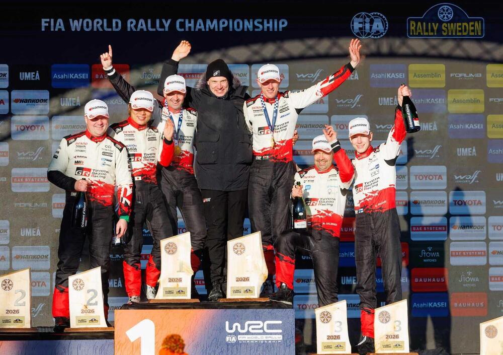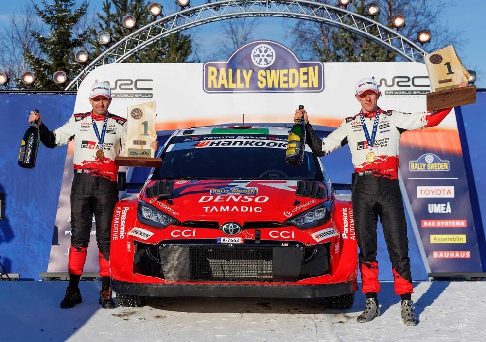 Super Sunday. Vale da sola, tra valori di giornata e di Power Stage, un massimo di 10 punti. Evans-Katsuta-Solberg sulla prima Västervik, Katsuta-Pajari-Evans nella seconda. Sulla Umeå finale di poco più di 10 chilometri (la stessa che ha inaugurato il Rally, giovedì sera) salta fuori ancora una volta Thierry Neuville, una sorta di goal della bandiera. Meglio di niente, sono del Campione del Mondo 2024 i 5 punti Power Stage, ma non i 5 Super Sunday, che vanno a Evans, secondo nella speciale finale. Niente male, niente male affatto, Elfyn Evans e Scott Martin hanno vinto il 73° Rally Sweden e bissato il successo dello scorso anno. Takamoto Katsuta, terzo nel Power Stage alle spalle anche di Evans, è secondo assoluto a meno di 15 secondi, e un evidentemente soddisfatto Sami Pajari è terzo. A Oliver Solberg, quarto finale, e Esapekka Lappi, sesto alle spalle di Adrien Fourmaux e davanti a Thierry Neuville, i restanti punti Power Stage.