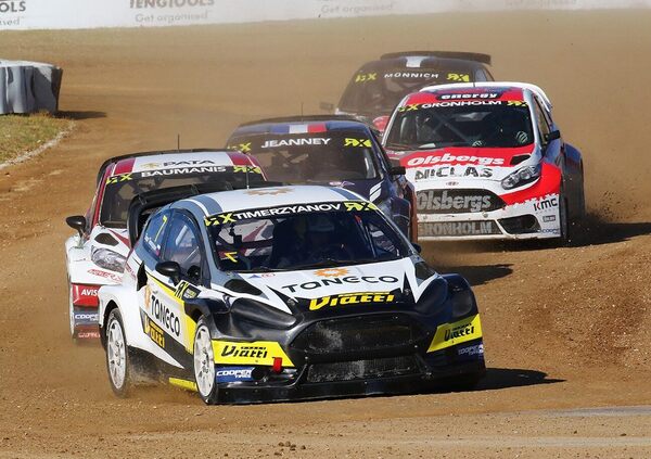 Finale. Tutto possibile, come sempre. La finale di una prova Mondiale di Rallycross è il parossismo di adrenalina dell’intero week end. Conta una sola cosa, vincere, e tutti quelli che vi accedono hanno, tutto sommato, una buona chance. Altra sorpresa, le due Fiesta del Team WRX Austria, Timerzyanov e Baumanis, per la volta insieme in finale. Sin dal via Ekstrom è il più rapido, e anche il più deciso e determinato. Lo svedese conduce i primi giri davanti a uno scatenato Timerzyanov, a Kristoffersson e Hansen. Hansen risale quando i piloti che lo precedono affrontano il giro Joker, si “incolla” a Ekstrom e resiste al ritorno di Timerzyanov. Quest’ultimo, “colpito” da Kristoffersson, è costretto a cedere il passo, ma la dinamica finisce nelle mani della giuria. Ekstrom ha la meglio su Hansen e può controllare l’esiguo margine fino al traguardo. È la quarta vittoria dello svedese, e vale la leadership del Mondiale. Il contatto tra Kristoffersson e Timerzyanov viene giudicato irregolare, lo svedese finisce all’ultimo posto, il russo e Baumanois al terzo e quarto.