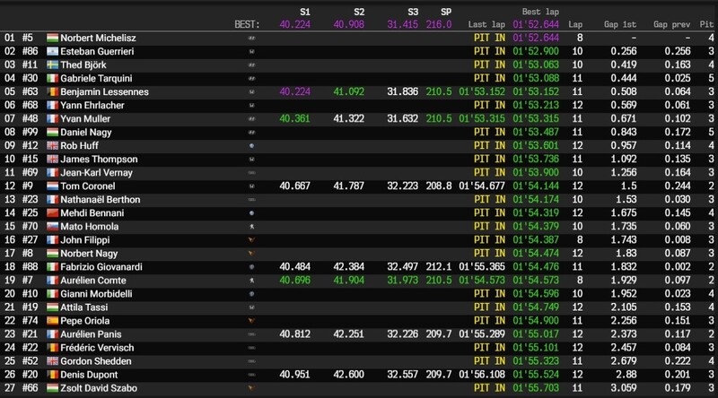 Gran tempo per il belga Benjamin Lessennes, che all’ultimo giro ha fatto un primo settore “viola” e sul traguardo è risalito fino alla quinta piazza.